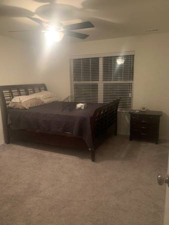 One room for rent in a 5 bedroom home. Room comes with a private bathroom and large closet. The room has a south facing large window and gets lots of light and is unfurnished. Wifi, electricity, water, satellite TV, and trash are all included in the rent. Private hot tub in the back yard. Access to an open professional kitchen, great for meal preparations, access to an expansive open common space, and access to a shared laundry room. House is shared with 3 other working professional adults and one friendly dog. No other pets at this time. Off street parking available for one vehicle. Home overlooks and has access to an 18 course golf course and access to a club house, pool, and gym. We look forward to welcoming a new addition to the house. Rent includes wifi, electricity, water, and trash. The property is non-smoking. No recreational drug use , or vaping anywhere on property.