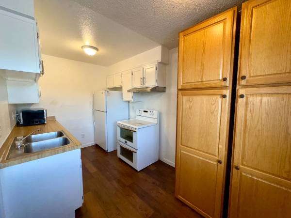 Spacious rooms with lots of natural light, in-unit laundry, plenty of storage, 2 parking spaces, and comes equipped with a stove, refrigerator, and microwave! Located in a quiet neighborhood close to public transport and multiple schools!