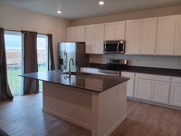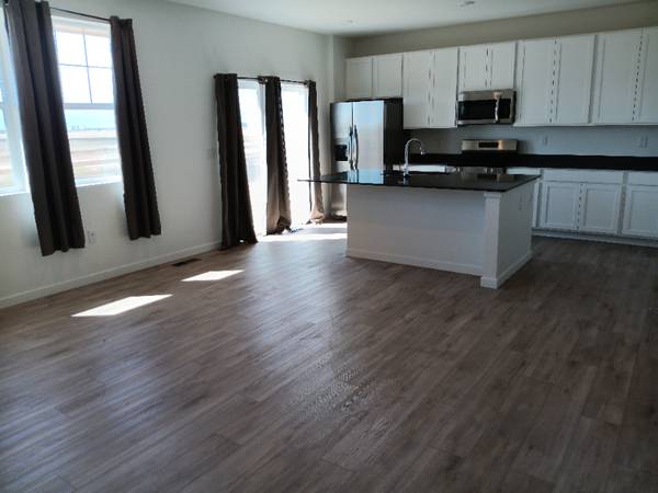 Beautiful, large, BRAND NEW SF home. Three bdrm, 2 bath home with 2 car attached garage, and crawlspace basement. NO SMOKERS. NO BACK YARD FENCE. Covered front porch. BRAND NEW appliances including, W/D, DW, Fridge, Elec. Range, Microwave, and Garbage Disposal. Luxury kitchen with stainless steel appliances, huge island, spacious counters, large pantry, lots of cabinets space. Walk in MB closet, walk-in shower in MB. Open space floor plan with vaulted ceilings and recessed lighting. Three large bedrooms, with lots of closet space. Beautiful carpet, luxury vinyl plank flooring. Laundry room, nice window treatment throughout. Large landscaped back yard. Lovely community, pools, community center, playgrounds, etc. Near Denver Int. Airport, King Soopers, Starbucks, Walgreens. Many shopping/dining options. Quick access to E-470. Tenant pays gas, water, solar, and electric.