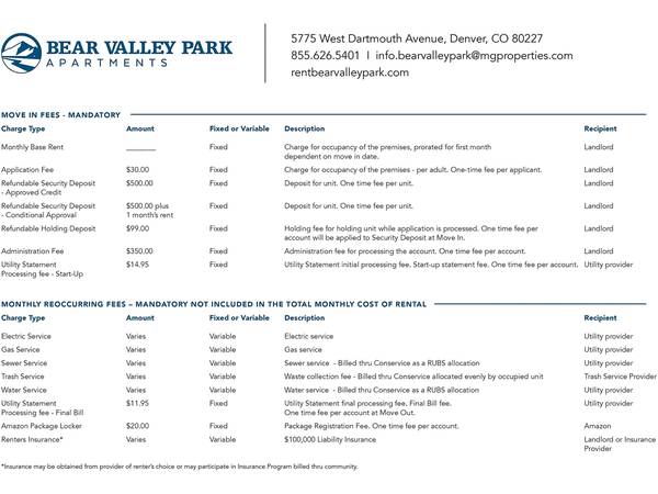 DENVER APARTMENTS NEAR BEAR VALLEY
