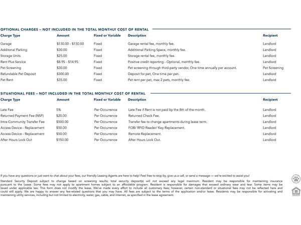Pet Ownership Policy: 2 pet limit. Breed restrictions do apply. Pet Deposit $300. Monthly pet rent $35 per pet.