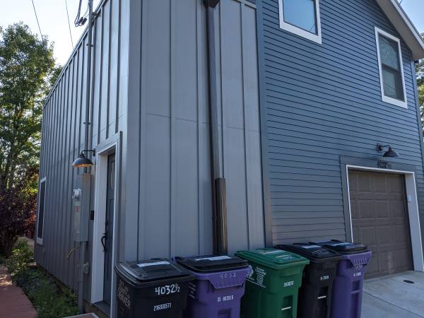 Owner pays trash/recycling/compost. Utilities are combined with the main home, with the renter to pay 30% of actual water, electric, and gas bills (which remain in owners name).
