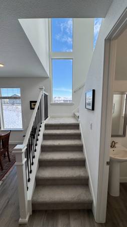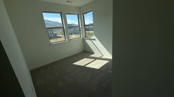 Unfurnished. Rare end unit abutting neighborhood greenspace (AKA you have an extra big backyard) and a flagstone patio that has outdoor space not abutting a roadway or a neighboring home. Inside and outside, there are unobstructed views of Mt Morrison and Green Mountain. Farther from C470 than the brand new homes being sold by Lennar. Landscaped with live grass and greenery, space for a garden, and drip lines for flower pots.