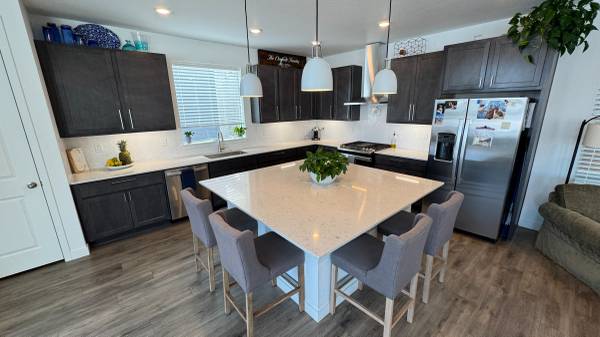 Cabinetry throughout upgraded with hardware and soft-close drawers/hinges. Kitchen upgraded with pendant lights, under cabinet lighting, a range hood, and a herringbone backsplash. Foyer has upgraded vaulted chandelier. Eight foot doors throughout the home.
