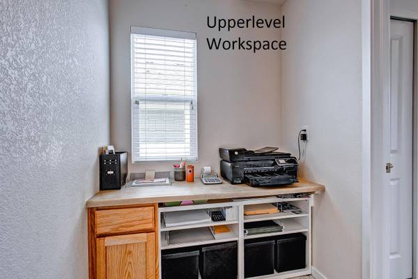 * The upper level includes an office nook and a laundry room.