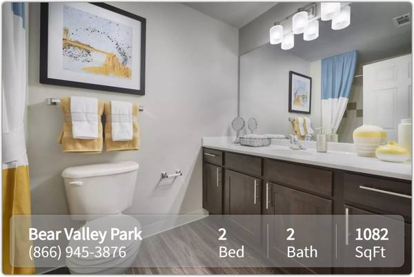 Modern amenities elevate the everyday at Bear Valley Park. Every feature of our apartments is built to maximize your convenience and enjoyment - putting comfort first. Our spacious and modern floor plans have designer finishes and fixtures you'll love. In our lushly landscaped community, discover the perfect urban escape just steps from your door. Bear Valley Park has created a stellar collection of resort-inspired amenities to keep life fun, active, and social.