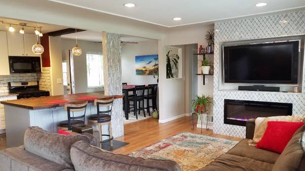 4 BR, 2 non conforming/1.5 BA with attached oversized garage Updated single family home with nearly 2,000 sqft Available January 5, possibly sooner Newly renovated brick home in a central location $2850/month includes water/sanitation & lawn mowing services). There is even a vegetable garden in the backyard! Featuring an open floor plan, two living areas, an eat in kitchen/dining area, private deck and porch with peek a boo mountain views. * 4 bedrooms (2 non-conforming) * 1.5 baths * 1 car oversized garage * 2 large living spaces and dining area * Granite counter tops with a butcher block island and white shaker kitchen cabinets * Stainless steel appliances * Dishwasher * Tiled bathrooms * Hardwood floors * Deck & patio * Large fenced yard and vegetable garden * Storage shed * Energy efficient windows * Ceiling fans AND central A/C * Laundry room with washer/dryer included * Two panel doors * Electric fireplace * New hot water heater * 2 driveways and street parking (~4-5 spots) * 2 garage door remotes/keyless front door lock Close to Edgewater, the Highlands, Berkley, Tennyson, Sloan Lake, historical 38th St., downtown, old Lutheran hospital, olde town Arvada, Applewood, golden and light rail. Easy access to I-70 and I-76 and bike trails. Just a walk or a bike ride away from so many great things to do! Seen by appointment only; 1 year lease minimum; Security deposit: $2850 plus first month's rent of $2850 due at lease signing ($5700 total); Tenant is responsible for electricity, internet, gas, snow and trash removal. Landlord covers water/sanitation and lawn mowing. Must have verifiable household income of 2 times lease amount required. Application fee for background check and credit screening required Pet deposit of $300 plus $35/month pet rent