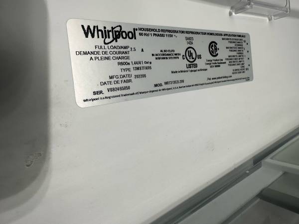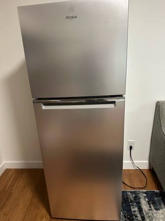 New 24" counter depth top freezer Whirlpool fridge with ice maker....
