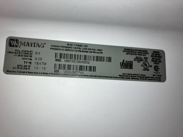 Selling my gently used Maytag 18 cu ft Black Refrigerator (model MBRKEGMAB02) in perfect working condition. Ideal for any kitchen or garage!