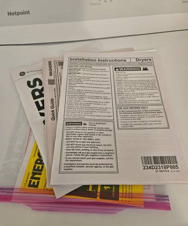 1 year old laundry machine set and in perfect condition. includes installation instructions and manual.