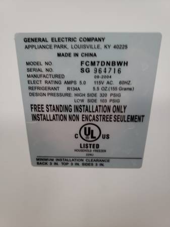 Reach in deep freezer 7.0 cubic feet measurements are 38" wide x 22" deep by 33" tall and it's in excellent condition and CLEAN! No damage and runs super-duper quiet. Great for hunters or storing frozen meat, fish, or vegetables for food security. Compact so it can fit into tighter garage spaces for example.