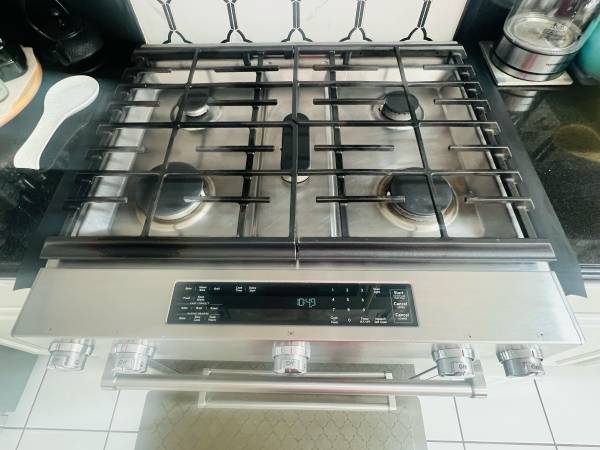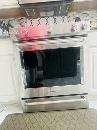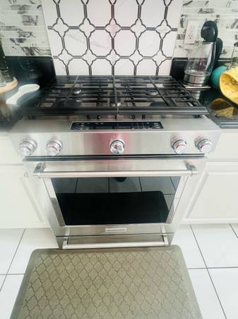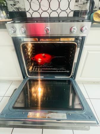 Dual Kitchenaid stove, 30 inch, stainless steel.