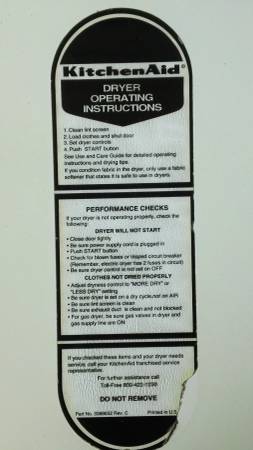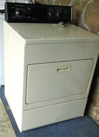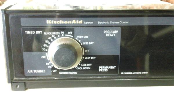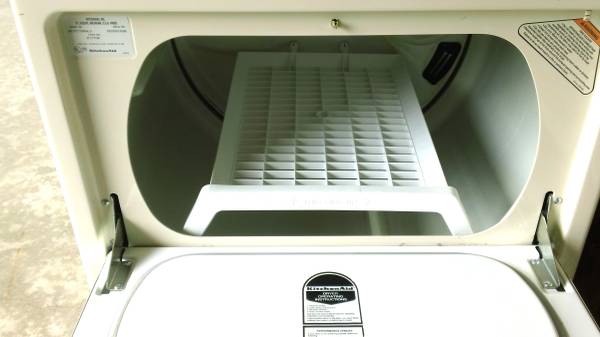 This Kitchen Aid Clothes Dryer with Ivory Finish is in great working condition. It has numerous temperature controls. There is a removable rack that fits inside when you want to dry tennis shoes, etc. without tumbling them.