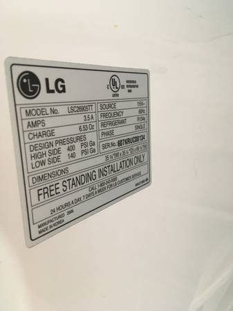 LG Refrigerator 25.9 CU side by side. Clean. Runs well. New fan motor and ice maker valve. Needs new water line. Has a few cosmetic dings on door. Asking $150 cash. You must load & haul.