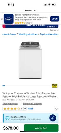 Whirlpool washer, dual agitator. Three years old and gently used as it was in a one person household. Whirlpool dryer 3 1/2 years old gently used. Selling the set for $250 or the washer individually...