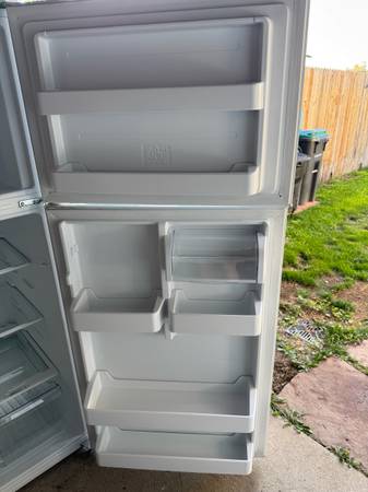Refrigerator door features 2-large shelves, 2-small shelves and butter tray