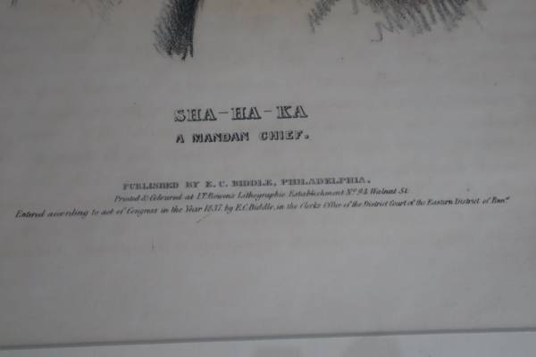 This is a lithographic portrait of Sha-Ha-Ka, a Mandan Chief, from McKenney and Hall’s three-volume work, Indian Tribes of North America.