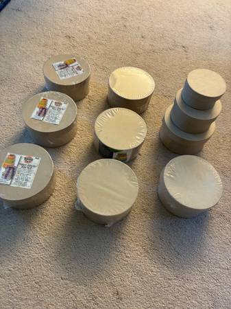 Personalize nesting boxes to match the style of your home or customize them to create gift boxes for friends, family, and coworkers. decorate the boxes with paint, decoupage, designs, stickers, and other embellishments. Seal your art with a mat or glossy topcoat to protect and enhance it. Each set includes three boxes in a 4 inch, 5 inch, and 6 inch round. 8 sets.