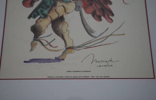 This exquisite watercolor and ink lithograph is brilliant and colorful showing a Dancing Guitarist Commedia Parade. Missiaja is one of Italy's finest modern impressionist and his peers recognize his artwork as the most exciting and extravagant, e-mail me or text 303 nine four nine 1678. Cash only