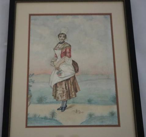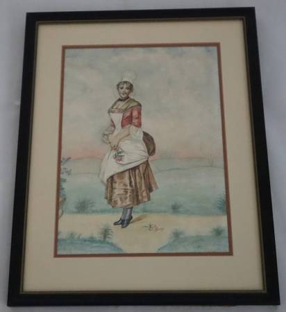 Watercolor Painting A woman holding a rose Ferdinand D' Charlestounes - $55 (se aurora)