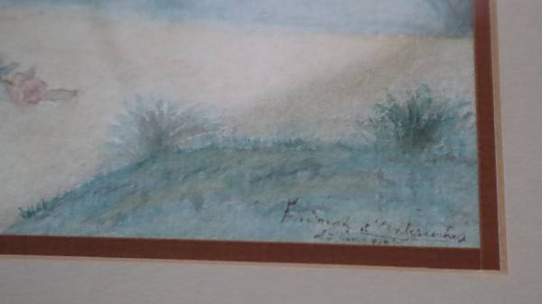Watercolor Painting A woman holding a rose signed Ferdinand D' Charlestounes (?)