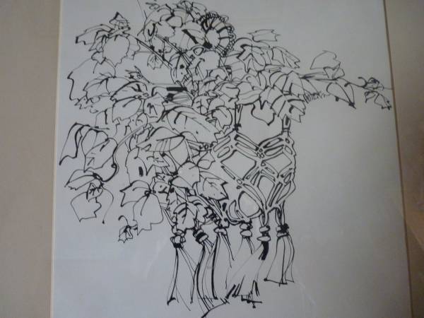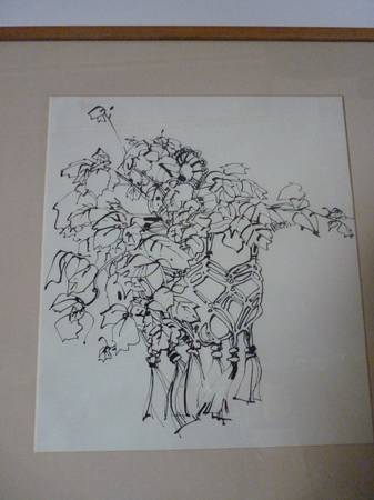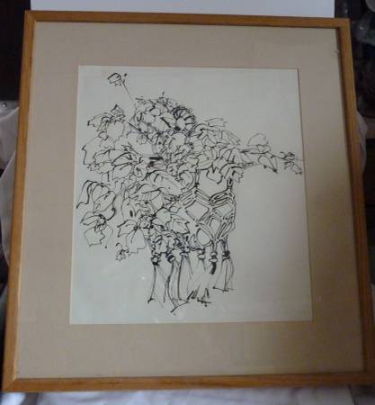 Black and white picture of hanging ivy Signed Patterson Framed in nice wood frame with glass and a tan matt overall size is 22 1/4 inches tall and 20 1/2 inches wide The paper on the back is pretty...
