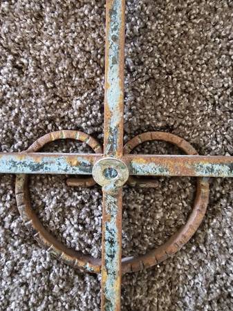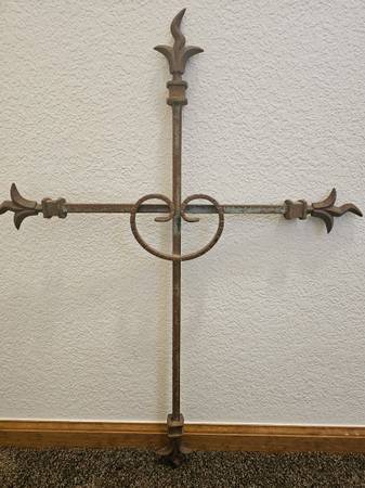 Large Solid Steel Cross Weathered look, rust and green in color 30" Tall, 23" Wide, 1.5" Deep