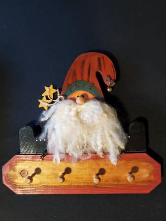 Santa Claus Wood Wall Hanger, 4 Hook, Hand Painted 12.5" Tall, 14" Wide, 3/4" Thick