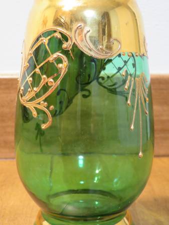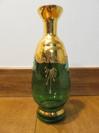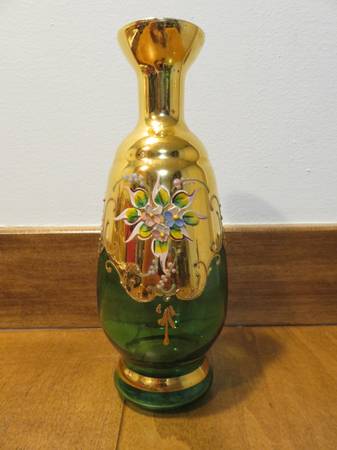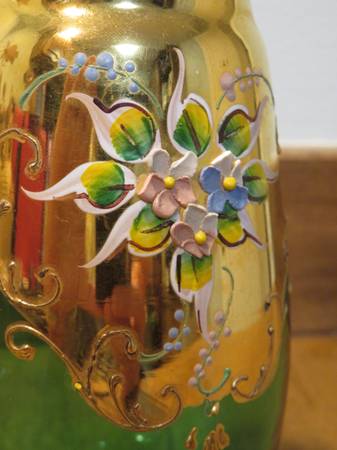 This listing is for one decanter bottle. The decanter is 8.5 inches high. This is hand-painted and features several flowers. However, each flower has some damage (see detailed picture). This decanter is missing the glass stopper. I don’t know the artist or manufacturer. There is some wear on the decanter but is in overall “good” condition. Please review all posted pictures. Pictures are of the actual items you will receive. Items come from a smoke-free home. Feel free to ask me any questions.