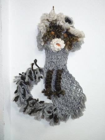 Look what I found hanging on a wall. It is a raccoon done in black gray