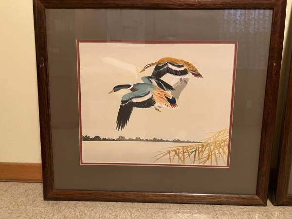 Beautiful flying duck prints. Double matted and framed in excellent condition. 24 by 22. $35 each