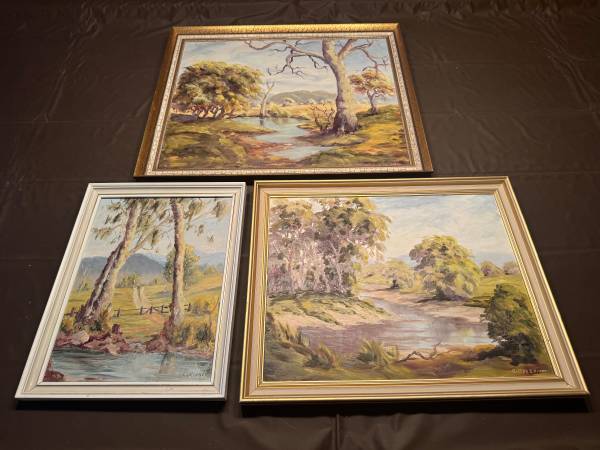 FRAMED WALL ART BILLIE SKINNER AUSTRALIAN OIL PAINTING SET (3) -...