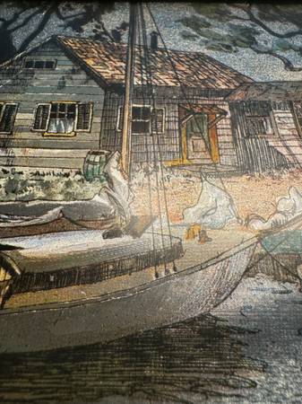 “Point Pleasant” Copyright Stand Pro Corp Lionel Barrymore USA 1878-1954 Drew Barrymore’s great-uncle https://www.artnet.com/artists/lionel-barrymore/ Etching 6”x8” Frame 11”x13”