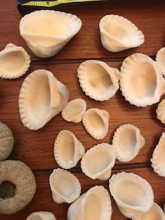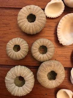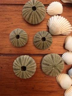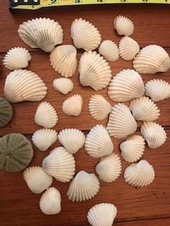 Coco Clam Seashells (30) Shell with Largest width: 2 Inches Sea Urchin Shells (5) All for $8.00 CASH ONLY NO SHIPPING