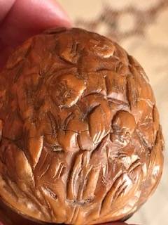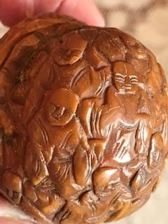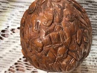 Hand Carved Walnut from China Bought in China Carvings of Monks Faces Diameter: 1 5/8 Inches $20.00 CASH ONLY NO SHIPPING