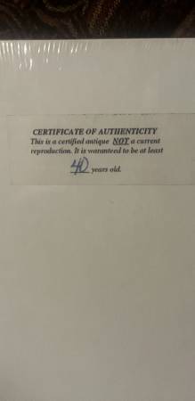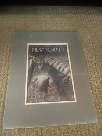 The print is commuters looking for their cars at the train station. The print is 8" by 11". The whole picture with mat is 14" by 18". The whole print is in very good condition.