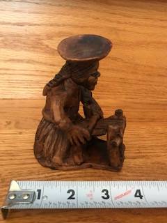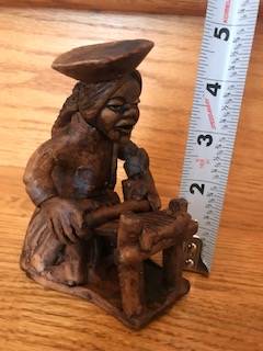 Peruvian Clay Woman Weaver Bought in Peru in early 90s Height: 4 1/2 Inches Width: 3 Inches Length: 4 Inches $10.00 CASH ONLY