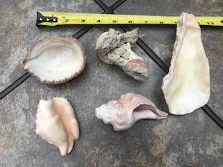 5 Seashells Largest Shell: 6 Inches x 3 Inches Other shells lengths from: 4 1/2 Inches to 3 1/2 Inches All for $10.00 CASH ONLY