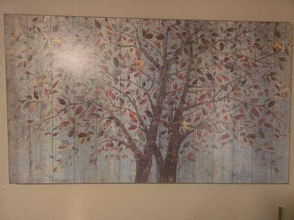 I have a large "Tree of Life" painting on wood. The artwork measures 49" long x 2"wide x 28" Tall. Im asking $30 for the artwork. Please call or text Erin if interested at .