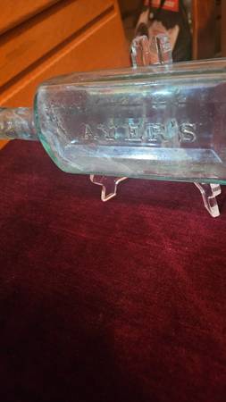 It is clearly embossed, Ayers Sarsparilla Compound Extract, Lowell, Mass. U.S.A. The bottom has 5 C on it.