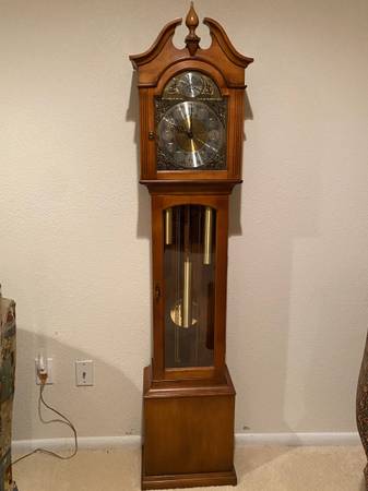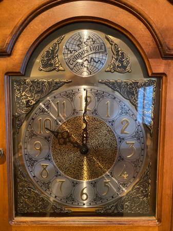 LOVELY TEMPUS FUGIT GRANDMOTHER CLOCK. $650.00 OBO. GOOD CONDITION! 66” tall 8” deep 14” wide