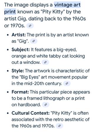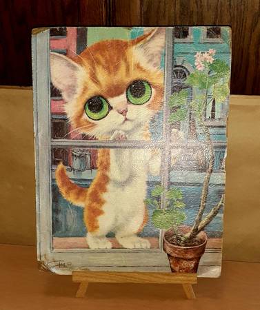 MCM/home decor/"Big Eyes" art movement/"Pitty Kitty" by artist GIG 8 1/2" X 11"