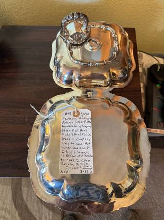 We are only 3 weeks away from Thanksgiving 11/27/2025 and then the last 2 Big Food Holidays Christmas and New Years and Dealer #18 @ HSAM is having his Fantastic Fall Sale 55%n Off Everything, Includes All Firms/Excludes NFD items. We have been busy little Elf's working in our Big Booth on Aisle 4 and our Showcase Front of Aisle 1 doing lots of Red Dot/Red Tag Sale items and bringing in New/Antique items every week. This week's New Arrivals is some Gorgeous Heavy Silver Plated Serving Pitchers/Trays/ a Fantastic 2 Lidded Chaffing Dish's with a Hot Water holder with Handles, some 1887 Queen Victoria Jubilee Cup & Saucer sets and some Gorgeous Crystal Optic Stems in 3 sizes and more. We are located in Hampden Street Antique Market 8964 E Hampden Ave Denver Co 81231; we have Free Parking and Helpers to find those Perfect Treasures for All of your Loved Ones on your Good List, and we can help with Gift Ideas. Please see some pics of some Red Dot/Red Tag Sale items and some that are Not on Sale but Perfect for those Very Special Gifts for those Very Special Loved Ones that Deserve Only the Best. Remember Dealer #18 @ HSAM and his Fantastic Fall Sale 55% Off Everything, Includes All Firms/Excludes NFD items. Thanks for 19 Years @ HSAM and Happy Holidays to All