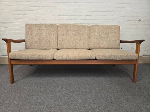 A mid-century teak, three seat sofa by Glostrup of DENMARK and designed by Juul Kristensen.
