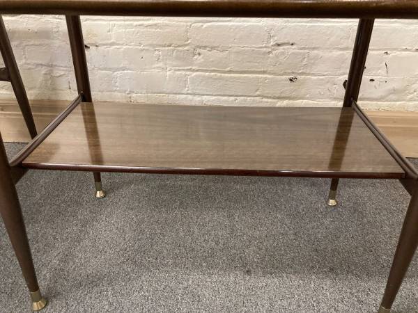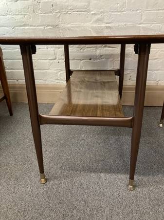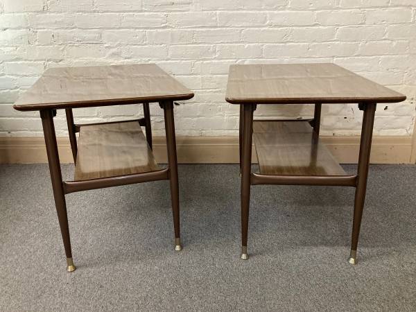 This is a beautiful set of end tables, especially if you are seeking a “non-wood”, easy to care for look in your mid-century space.