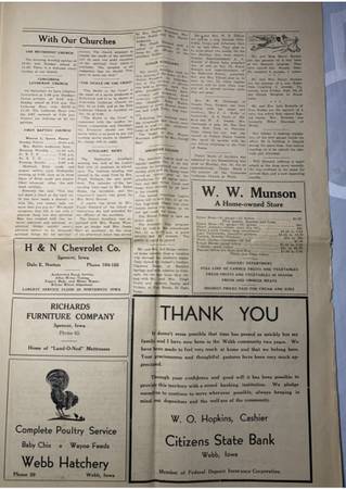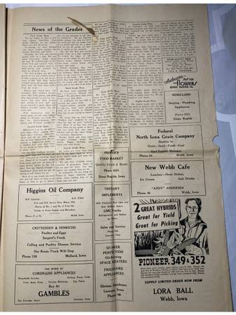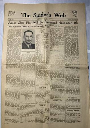 1949 VINTAGE newspaper. 3 sheets at 24” x 18” with print on both sides. The Spider’s Web newspaper October 24, 1949 Edition - Volume IV - Number 2 $5