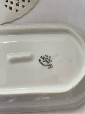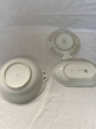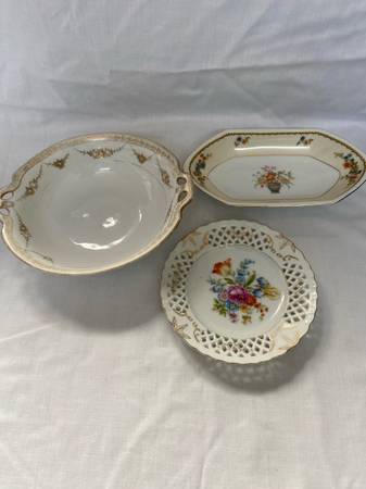 Three different bowls , dishes, opponents, check, porcelain, candy or nut bowl, hand painted.