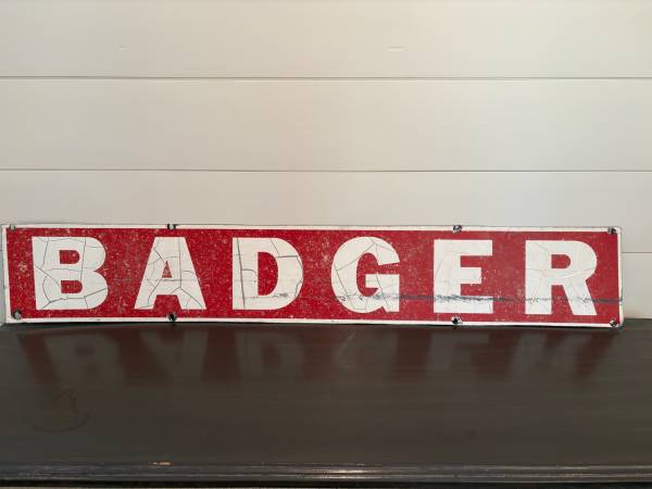 Wisconsin Badgers, UW Madison, Bucky Badger, college mascot, vintage sign, reclaimed decor, upcycled art, hand-painted sign, steel sign, game-day wall art, retro university memorabilia, sports bar decor, Wisconsinites