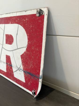 Back: Shows bolt pattern and metal plate—consistent with street signage