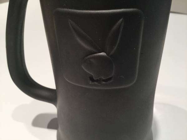 The Playboy Club 1970s Black Raised Bunny Beer Stein is an original vintage glass beer mug featuring the iconic Playboy brand logo with a raised bunny design. This collectible piece was manufactured in the 1970s and is perfect for serving cold beverages. With its unique color and material, this vintage beer Stein is a must-have for any Playboy fan or collector of retro glassware. Its one-of-a-kind design makes it a standout piece for any kitchen or home decor. Excellent Condition. Perfect Gift for the too much beer drinker in your life. They'll love it and be the envy of their beer swilling buddies.